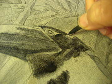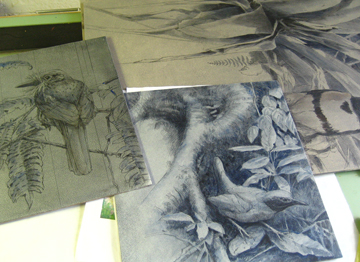 With the grayscale studies done it’s a simple matter to duplicate the effect in acrylic, and that’s how I spent my day, with a mix of Ultramarine and Burnt Umber giving me my shading and tone, deepening to black where I wanted it. And it was very, very efficient. I even got outside a couple of times and hunted down a few birds with my binoculars. There’s some sort of migration going on out there. I even found a female Blackpoll warbler hunting caterpillars in the post oak next to the house. And two Yellow-billed cuckoos, a fabulous Painted bunting and to top it off, a pair of Bluegray gnatcatchers building a nest, what looked like a knot on a branch made of lichen. The two of them were taking turns pushing their bodies into the cup to make it even deeper and more perfectly shaped. It was lovely and reminded me I have to spend more time with my subject matter, wherever it might be.