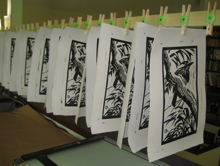 I stole this print-drying rack design from a very fine artist whose work I admire heartily and who’s been generous with her expertise. Thank you, Sherrie! It works great!