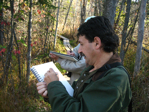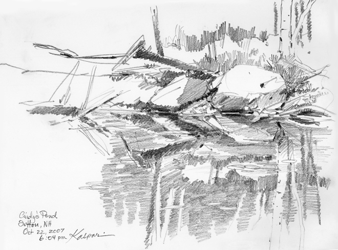Back from a solidly inspiring long weekend with wondrous artists- Cindy House, James Coe, Julie Zickefoose, Mike DiGiorgio and Barry Van Dusen– in beautiful New Hampshire, with lots of fresh air, brilliant foliage and discussions of what we do and why we do it. We somehow nailed down the perfect weekend for fall color and weather. The awesome pastel artist Cindy hosted the gathering at her 1790-built house in the woods of Sutton, and we enjoyed hikes, a walk in a cranberry bog (“why, what’s that little round red thing sitting all alone on the moss? A cranberry? No way!”), some fresh ocean air at Plum Island watching gannets and eiders on and over the waves (Cindy illustrated the waterfowl plates for the National Geographic Field Guide to North American Birds, so we were in capable hands). There was a show-and-tell day with comments and critiques, we sketched wild turkeys at the feeders, paid a visit to the Banks Gallery in Portsmouth (or was it New London?) where Cindy and Jim exhibit their work; there was comedy and morning coffee on the deck, and vast amounts of inspiration spread around. I came home with a head full of ideas and new directions for my work, and it’s back to the drawing board, literally.