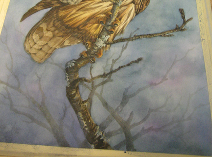 Barred Owl watercolor, 16″x27″, this one never quite worked. Pulled it out of the frame. Am trying to save it.