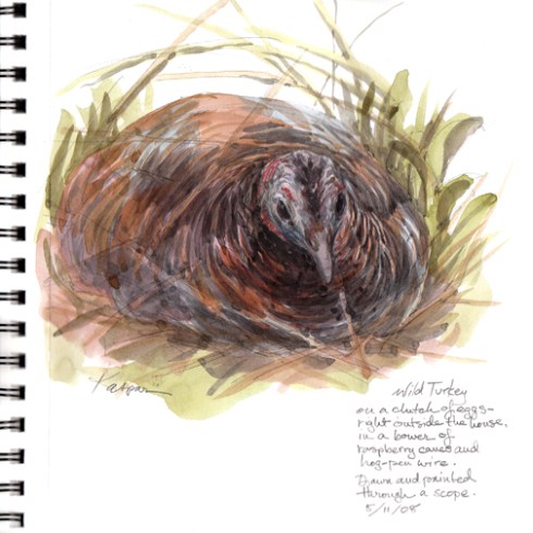Your nesting turkey sketch is truly amazing- I’ve lived here almost all my life and have never seen a turkey nest, let alone a hen on one!