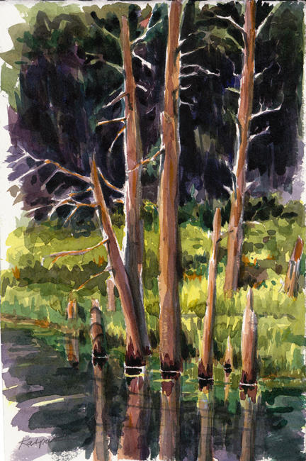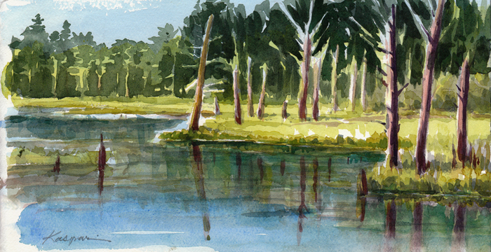 Wonderful paintings, Debby, and quotes. I’ve tried to read Thoreau a few times but I never got far. Your quotes are so good maybe I’ll try one more time. I’ll have a drink for the guy –I couldn’t paint a pond half so well.