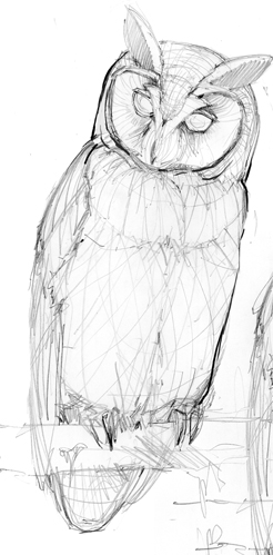 Striped owl: filling out the rough sketch, finding the center of gravity, getting the attitude.