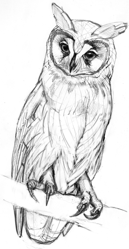 That’s one spanky owl sketch there. Makes we wanna reach out and bury my fingers in its fluffy feathers. Right before it grabs me with its nasty toes, to hold me down whilst it bites me in the tenderest bits. (Yup, voice of experience.)