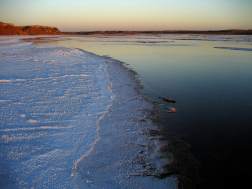 Selman Ranch. The white stuff on the beach is pure salt; it was blanketed with a thick crust. We took some home to grind up and cook with.
