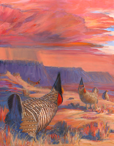 Stunning! Love the interplay between the detail in the Prairie Chickens and the loose strokes of their environment. The rain shower in the background is a nice touch. Wish I could take place in this experience. Bucket list!