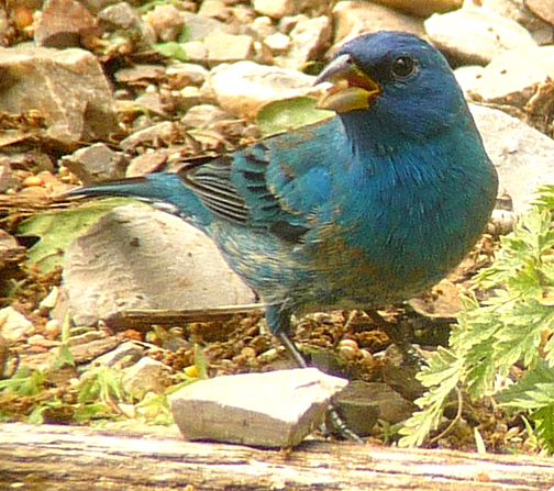Turquoise. Ultramarine. Indigo. Lazuli. Those are some of my favorite colors. Also names for birds- notably, two species of buntings currently here at Casa Motmot, scarfing down my birdseed and decorating the hardscape with their lovely blueness. We seem to be having a lazuli bunting irruption but why they are congregating at my house is up for speculation. I do have a theory- more on that later but it has something to do with lawn furniture.