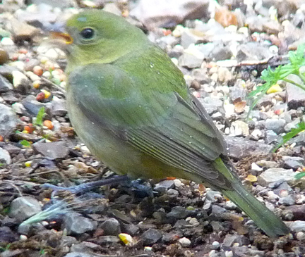 Great pictures! You have such a beautiful backyard. No wonder all the birds want to be there. One comment: The indigo female in the picture is a second year bird (based on the primary coverts), and it looks even drabber compared to painted females. Older indigo females have more distinct wing bars (though they are browner and not as bright as painted females) and usually have blue tint on upper tail and rump as well. Please keep up the great work on your website.