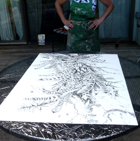 A new work, "Canopy Life"; field sketches combined in the studio on a large sheet of paper 30" x 39"