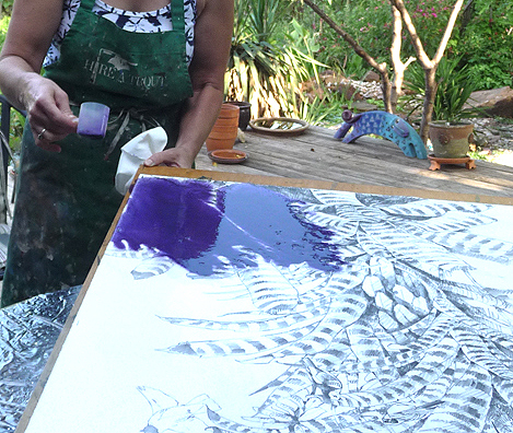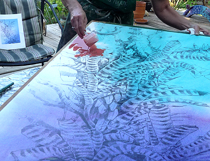 The water cure. There's a shower curtain over the patio table to puddle water on. The idea is to wash off the loose graphite and get the paper REALLY well soaked.