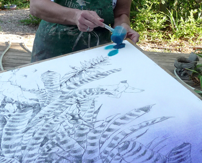 Houseplants in the wild; an Amazon bromeliad painting in progress.
