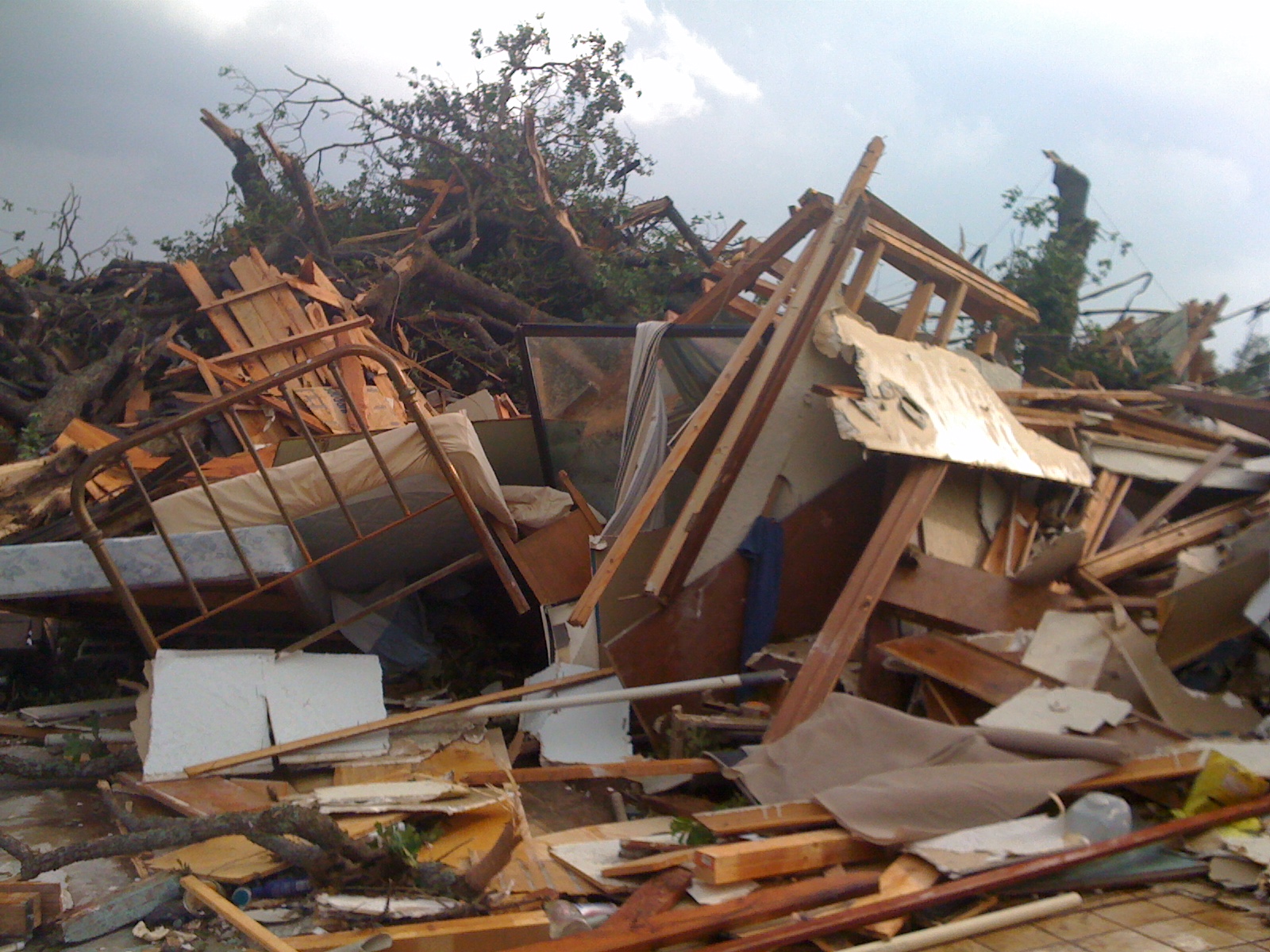It’s not every day you ride out a tornado. A direct hit from an F3 that was something like 1/2 a mile wide. I never believed it would happen to us, but it sure as heck did, and it took only seconds to blow our house apart, snap off every one of our beautiful  oaks, flatten the surrounding forest, sweep away the barn, trash both vehicles, and bury everything we own under a mountain of debris.
