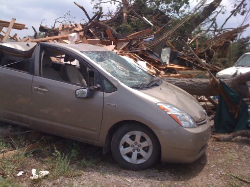 This miracle was provided by a sturdy steel box we had installed in the garage floor following the last tornado outbreak,11 years ago almost to the day. Before that, we would hunker in a crawl space under the stairs when severe storms blew through. Yesterday, the crawl space wouldn’t have been enough. Nothing above ground could have protected us from that kind of fury.