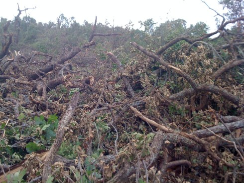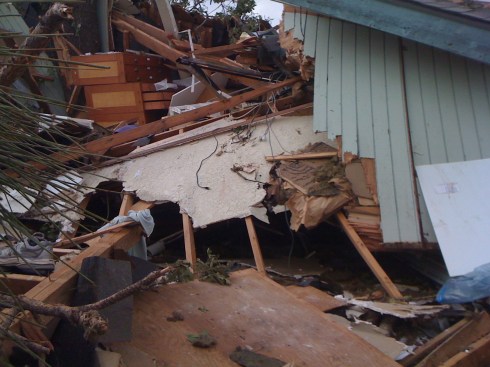 Our home, in shambles under fallen tree trunks, branches and crowns.