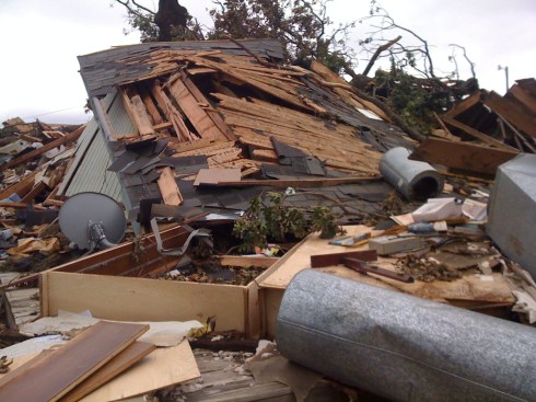 Our house was a well-built two-storey frame house on a slab foundation. Nothing is indestructible. Our well house was solid cinderblock and collapsed into rubble, and the barn, also well built, was swept away down to the slab. Our heat pump (it looked like Robbie the Robot of Plan 9 From Outer Space) was wrapped around a tree, hundreds of yards away. Around here, May is the cruelest month.
