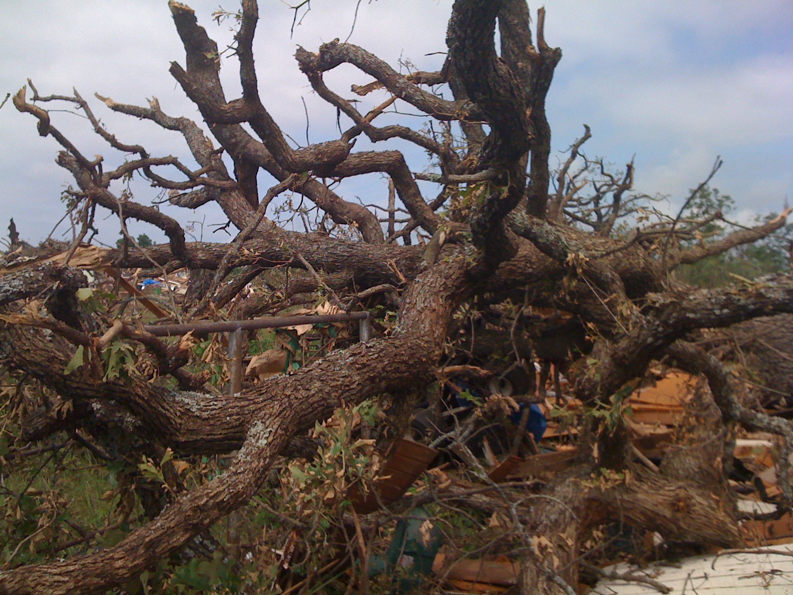 Every one of our trees flattened in the path of the tornado.