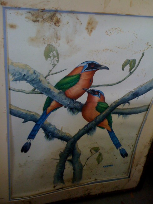 My first motmot painting, circa early 80s, a little worse for wear...Cotter was my unmarried name.