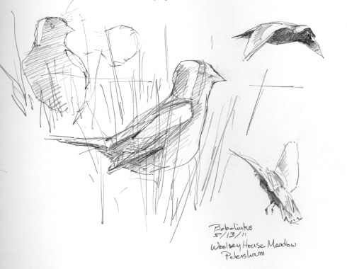 Just got back from 10-11 days seeing and drawing warblers at Ottawa NWR and Magee Marsh in Ohio. And now I see how much further I still have to go………… I didn’t even TRY to sketch the bobolinks we saw briefly one rainy morning.
