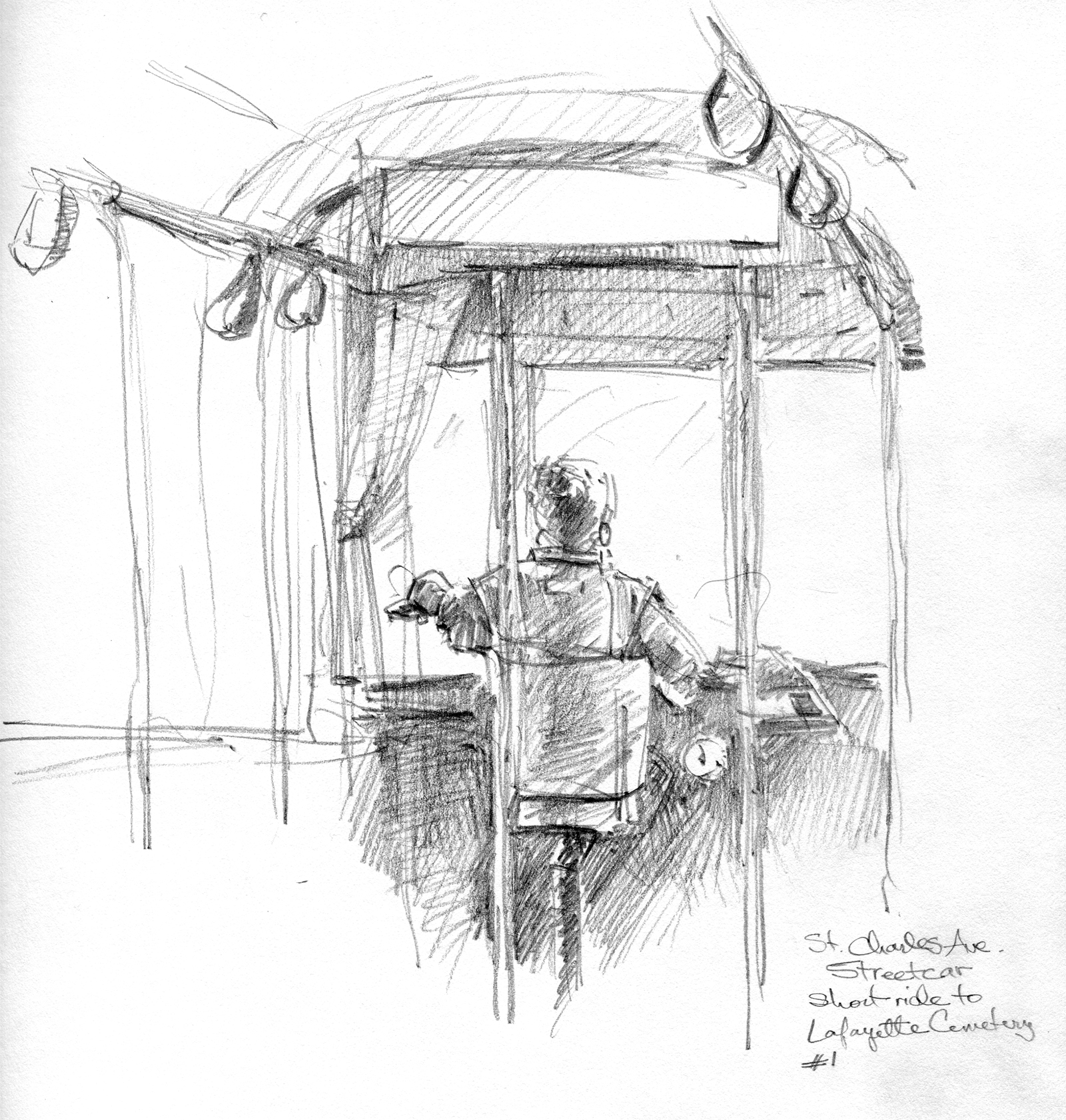 Giant live oaks unroll long branches onto the grass. Audubon Park’s trees embody strength, time and resilience. This one lost some bark, maybe with the help of Katrina, but looks otherwise hearty and hale. The resurrection ferns surely brought it good luck.Fine and private places: New Orleans’ coy little courtyard gardens entice and forbid from behind iron spikes.A streetcar named St. Charles rumbles uptown. Drawn between stops.