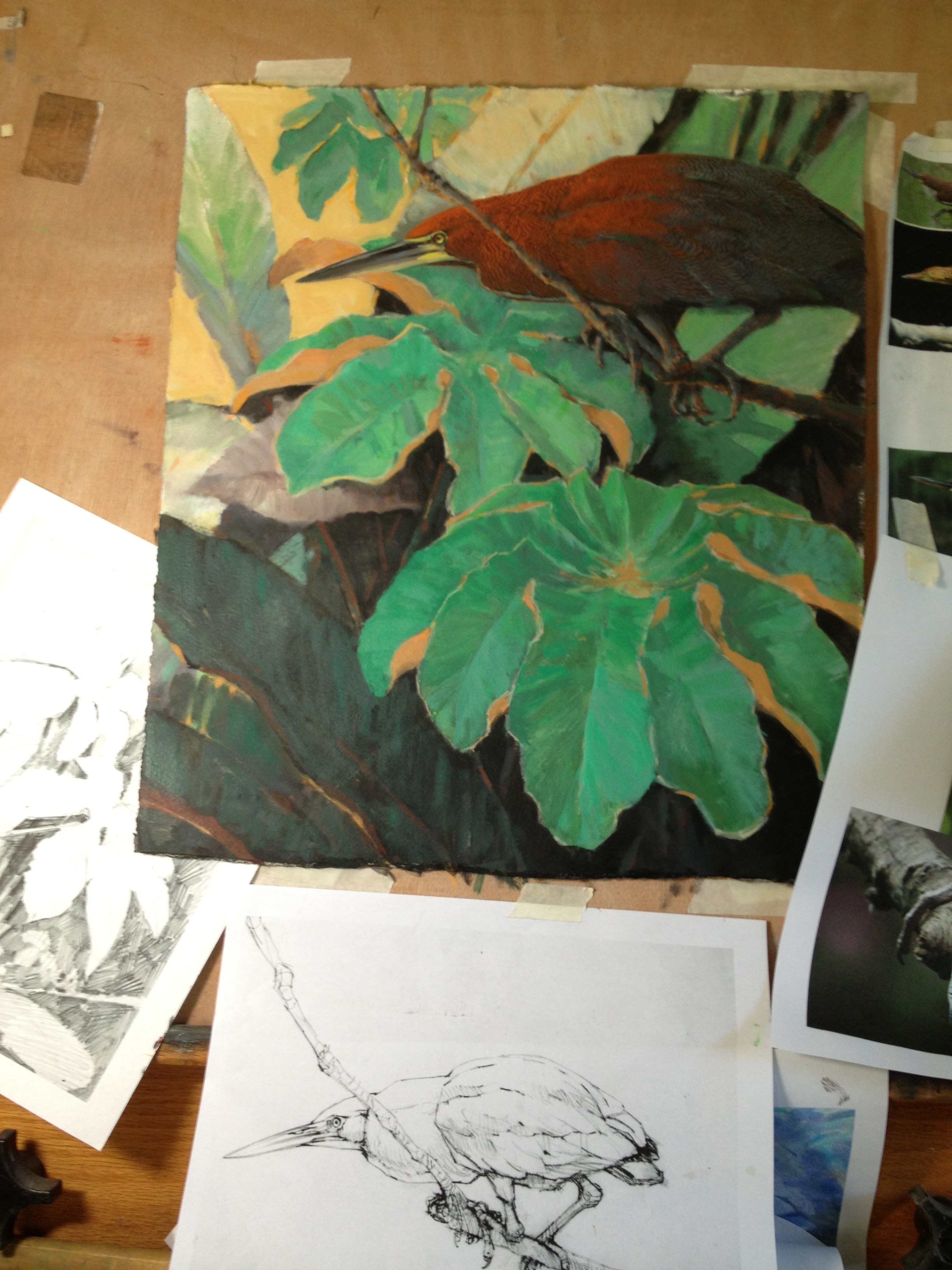 Rufescent Tiger Heron, oil on paper, 15" x 17". It's what's on the easel.