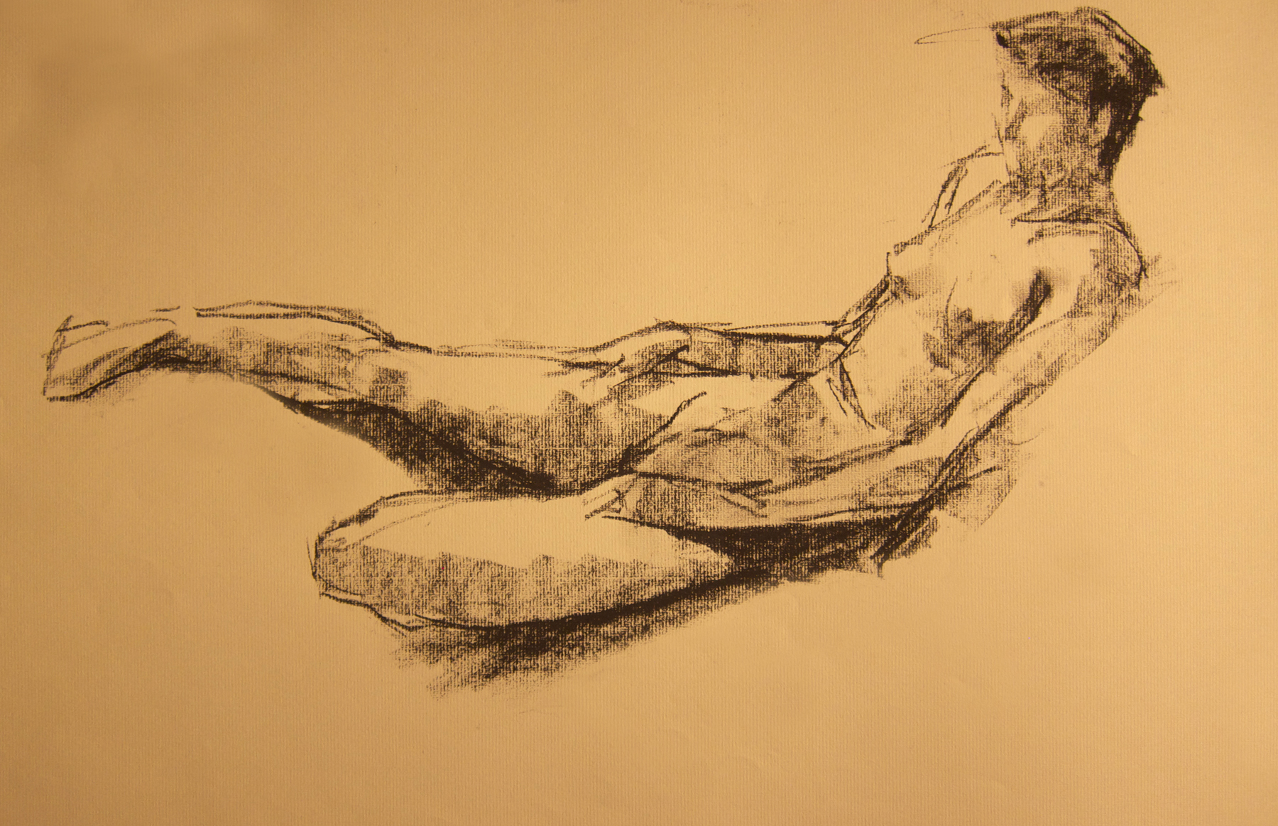 It felt good to sit before a model again and just draw. “Emerging Artist” means one who crawls out from under the show-painting/drawing rock. I’m back in the open and my big solo show opens April 17th. More about that soon, but for today, here are two naked ladies on paper.