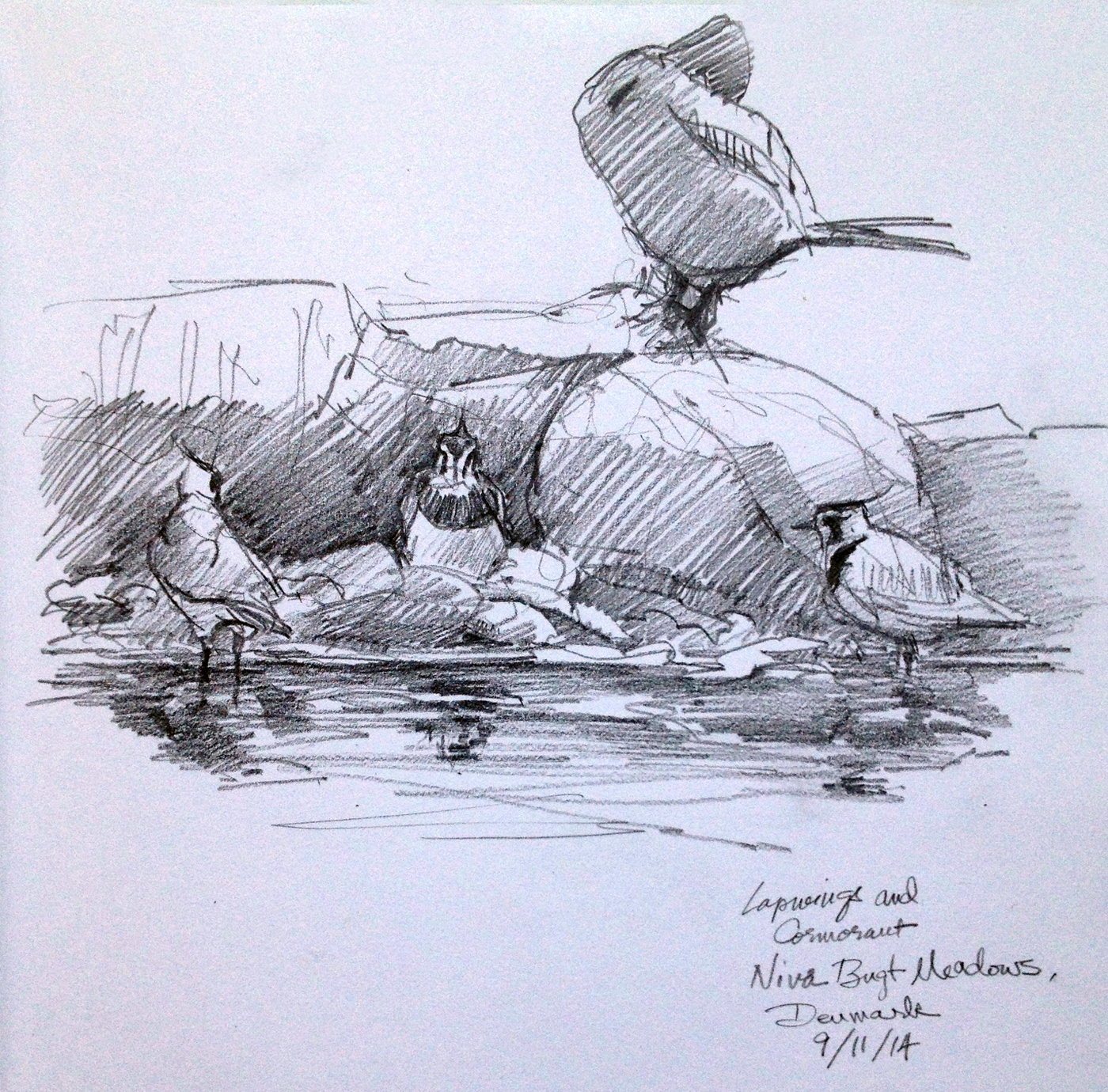 Not a big day for drawing, but a splendid one nonetheless. The agenda included smorrebrød with biologists and a visit with ornithologist/mind-bendingly fine bird artist Jon Fjeldså at the University of Copenhagen. A seven mile walk was taken with a stop at Assistens Cemetary for a moment of respectful silence at Hans Christian Andersen’s grave.