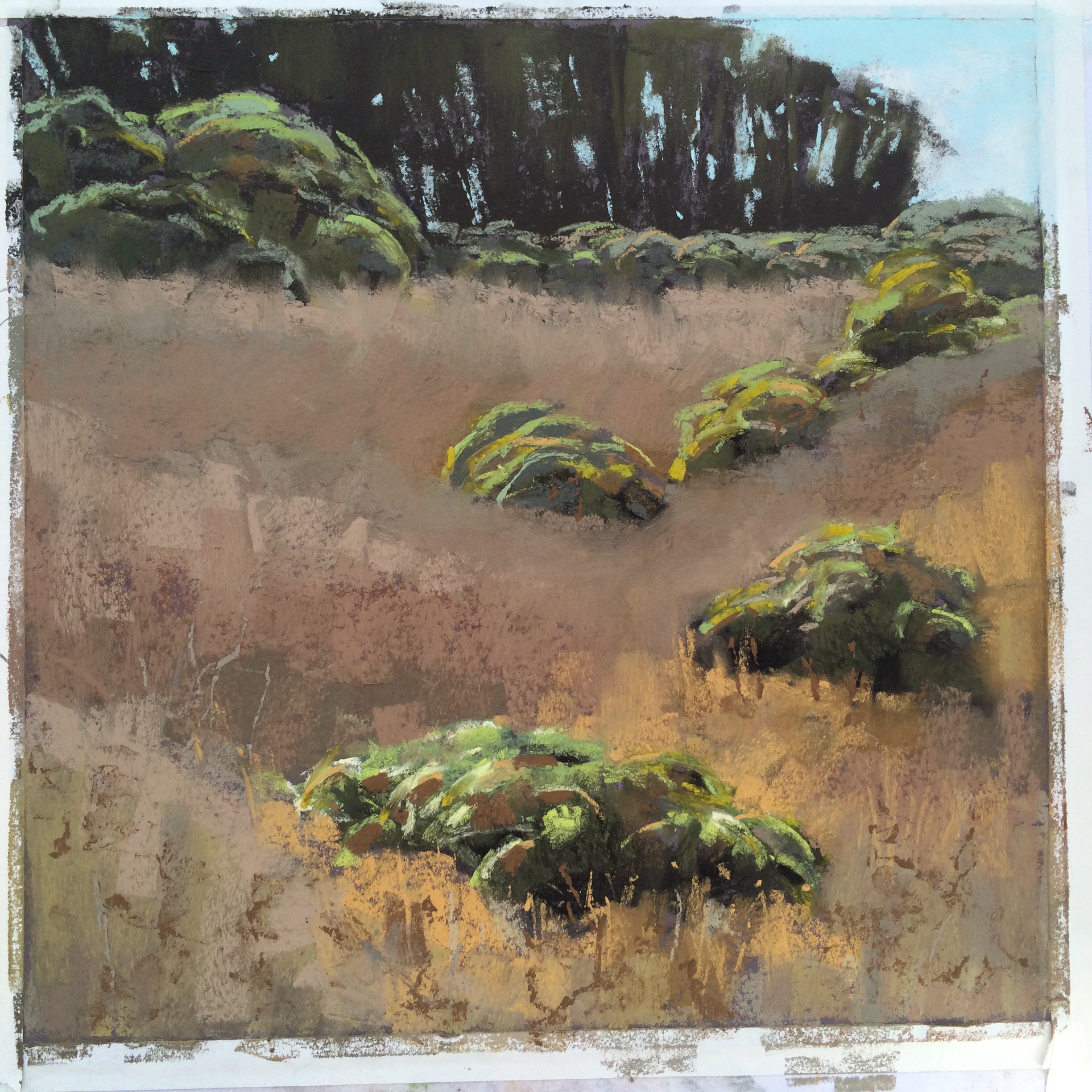 A homecoming for me. Painting the beautiful central coast. Happy to be here, with pastels and pencil.