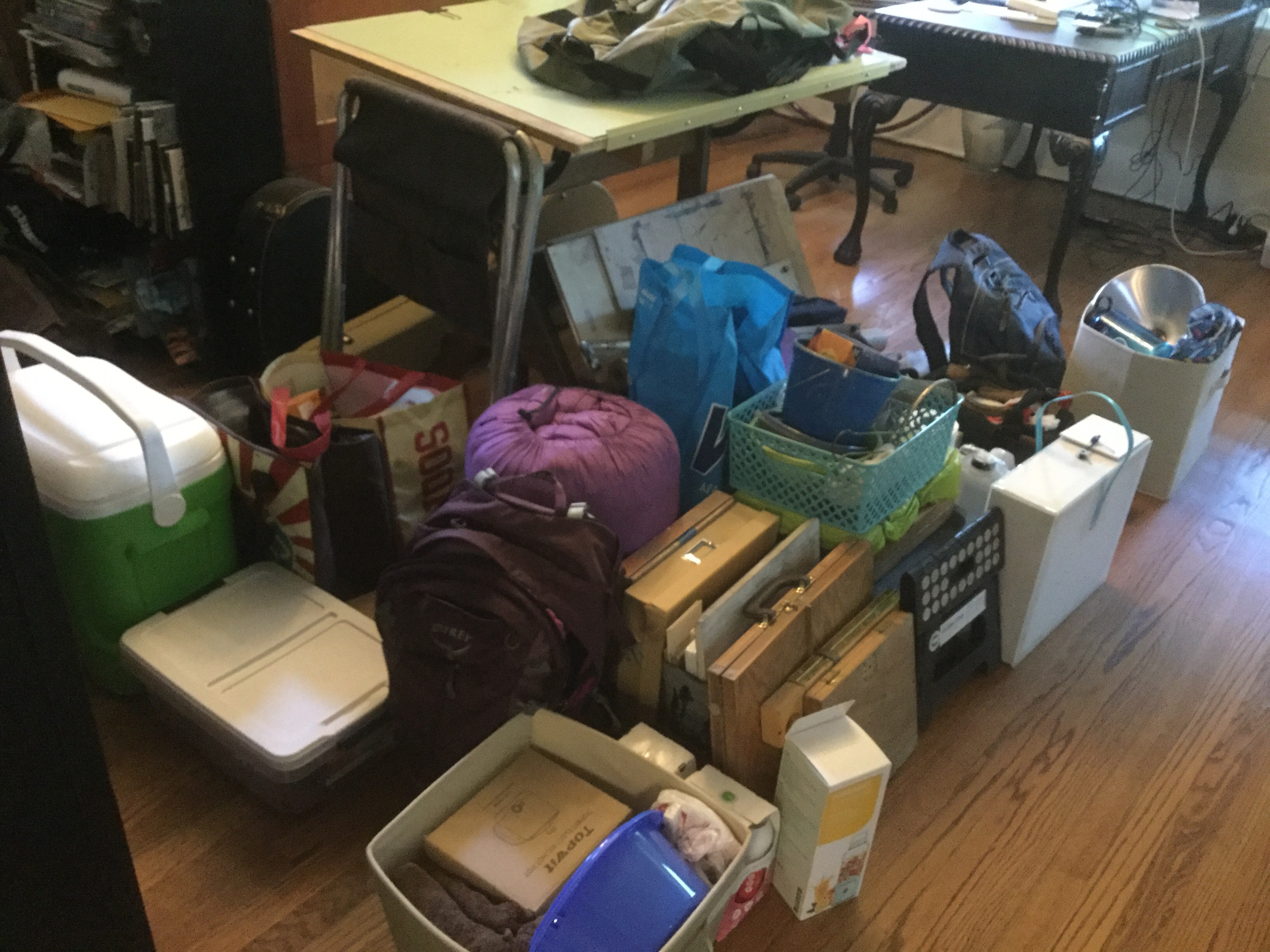 Heading off to an interesting place next week: Flathead Lake Biological Station in Montana. I’ll be Artist in Residence there for a month, painting and sketching the lake, rivers, and glaciers upstream. Below is the pile of art gear. Yes, I packed erasers.
