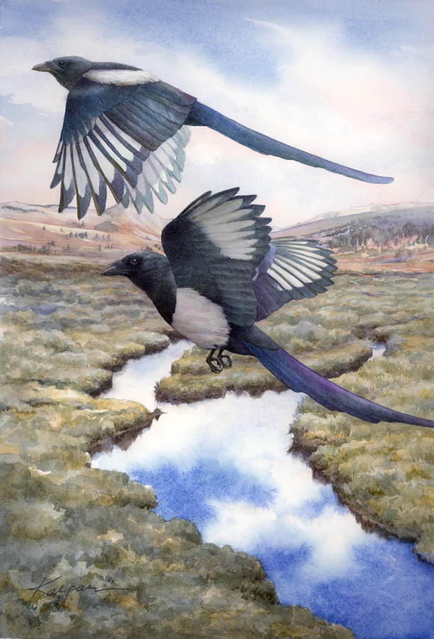 Black billed magpie watercolor