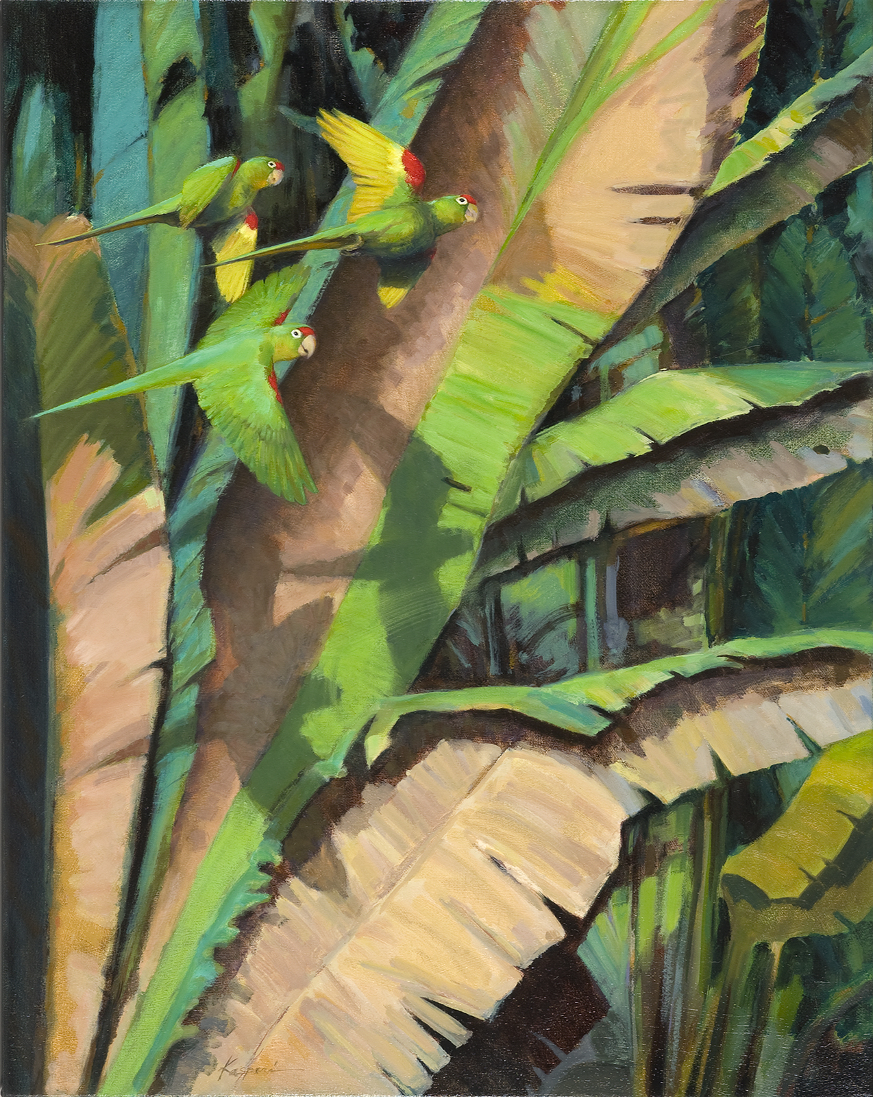Shadow Play: Crimson Fronted Parakeets