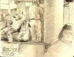 And of course, what has been my main question as these sketches have appeared over the last few weeks: Doesn’t that seam down the middle of your notebook drive you nuts?! Obviously not.