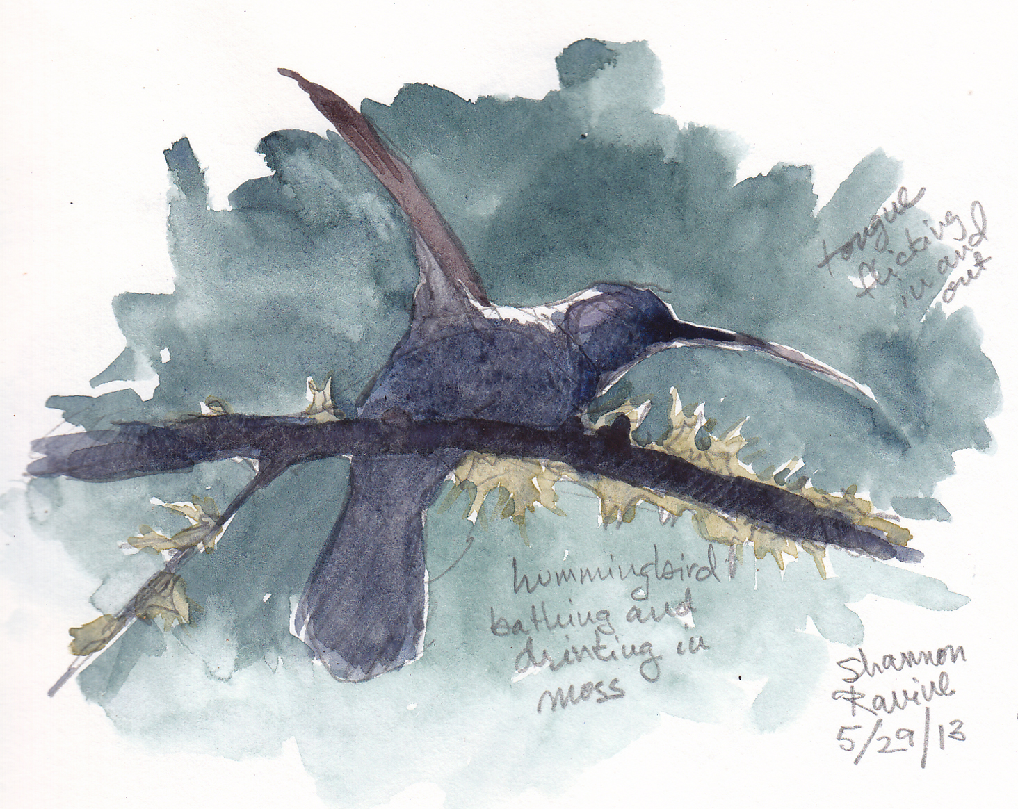 Hummer bathing in wet moss