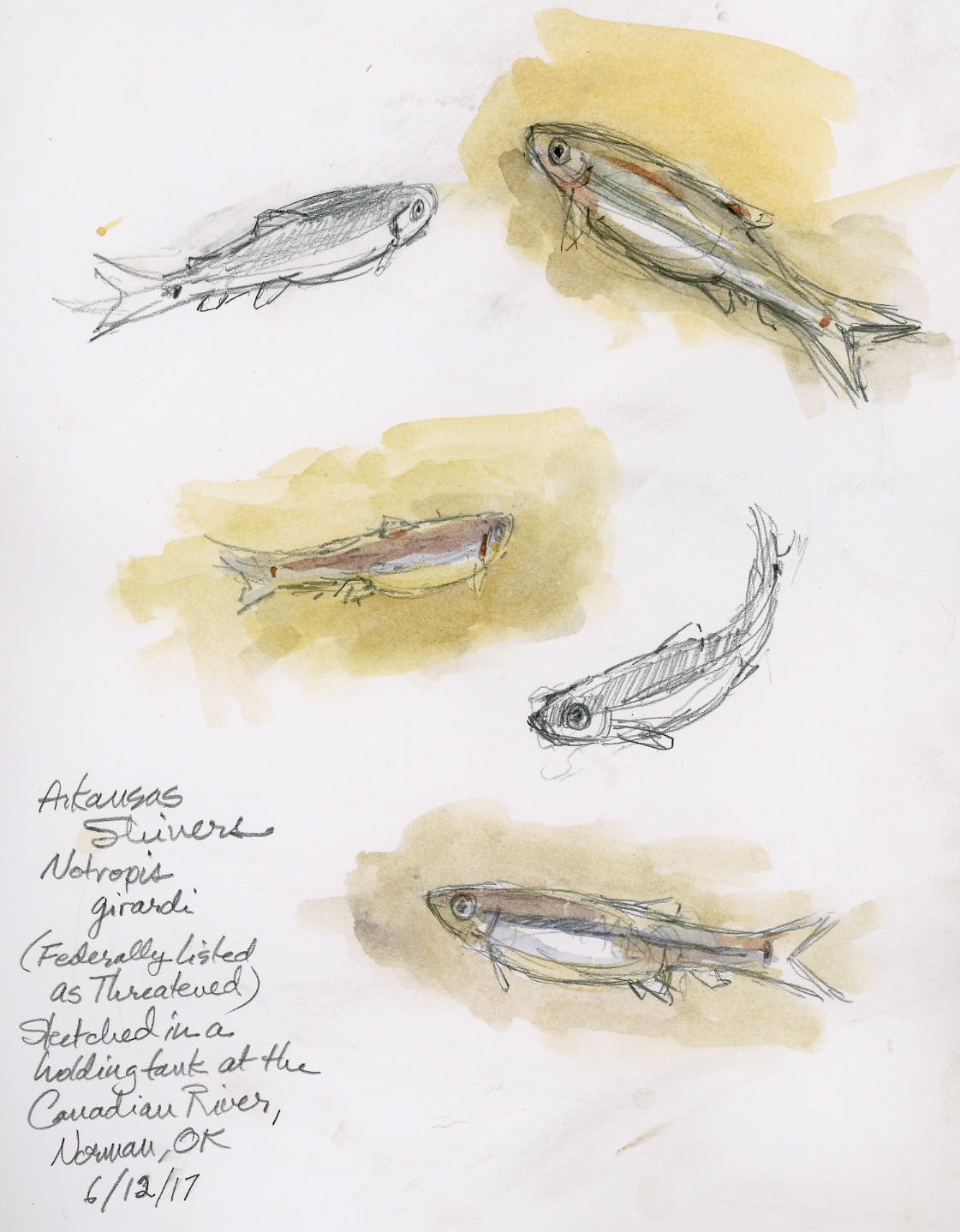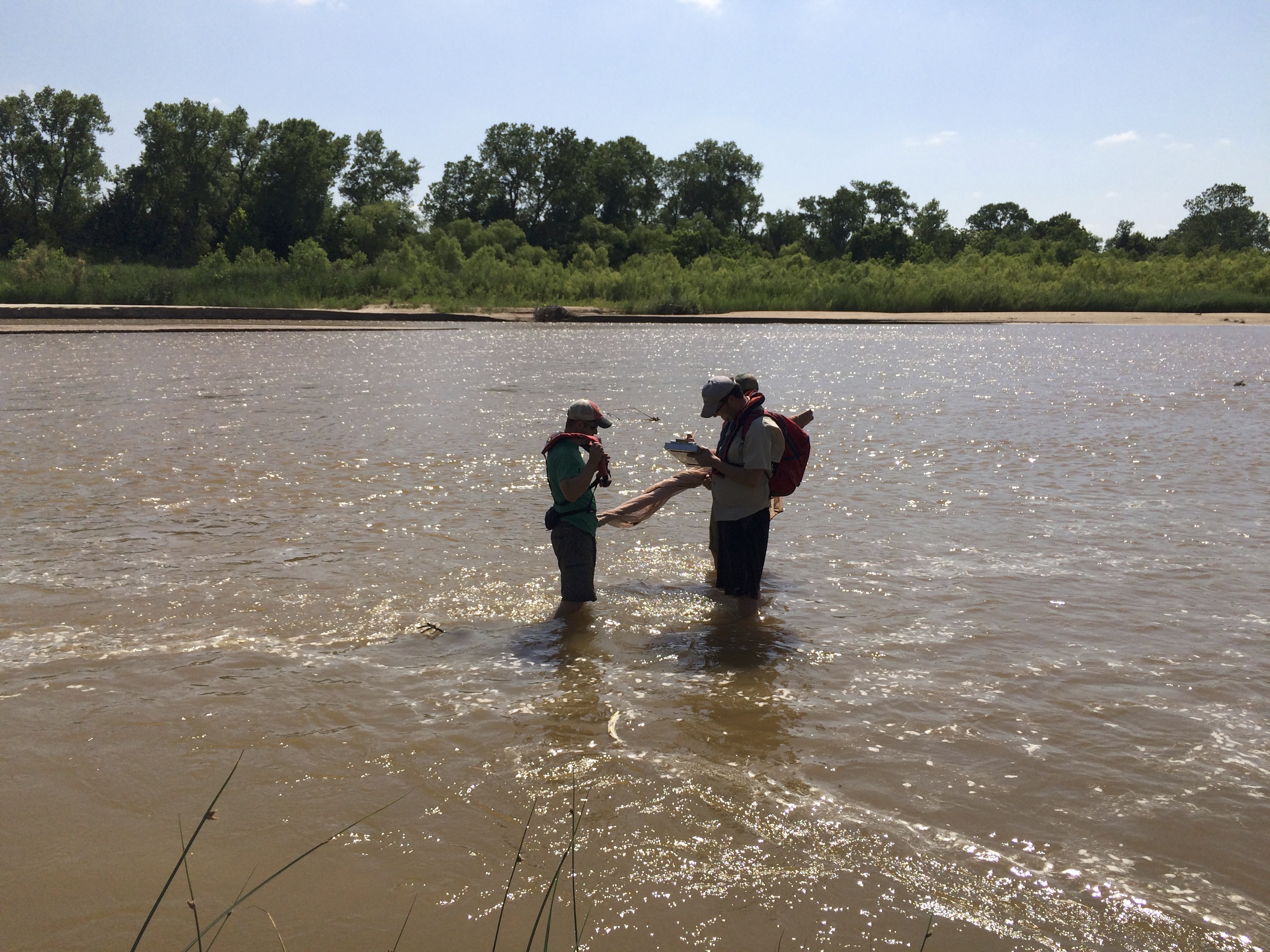 Our travels took us from one end of the state to the other. We followed the Canadian from Norman, where we joined biologists seining the water for Arkansas River shiners, hiked dry canyons overlooking the Canadian near Arnett where it flows across the western edge of the state and mule deer replace white tails. We followed the Kiamichi’s stony banks from a mountain gully near Arkansas to the cottonwood thickets of Texas, where it widens out and splashes into the Red River. We learned about freshwater mussels, interior least terns, shiners, and most of all, some of the issues that bubble up when you have a confluence of water, land, and people.
