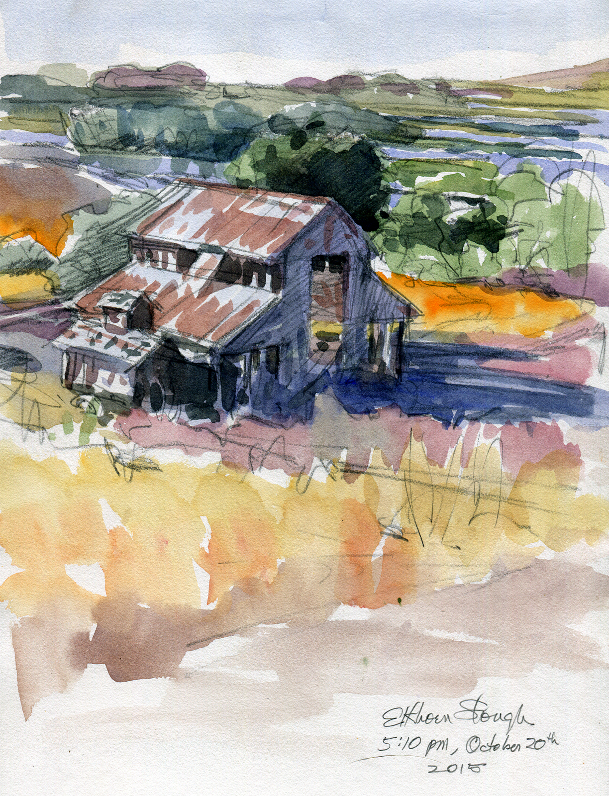 Plein Air Watercolors Elkhorn Dairy remnant structure, really cute and ready to sketch. Watercolor over pencil on Lana sketchbook. Related