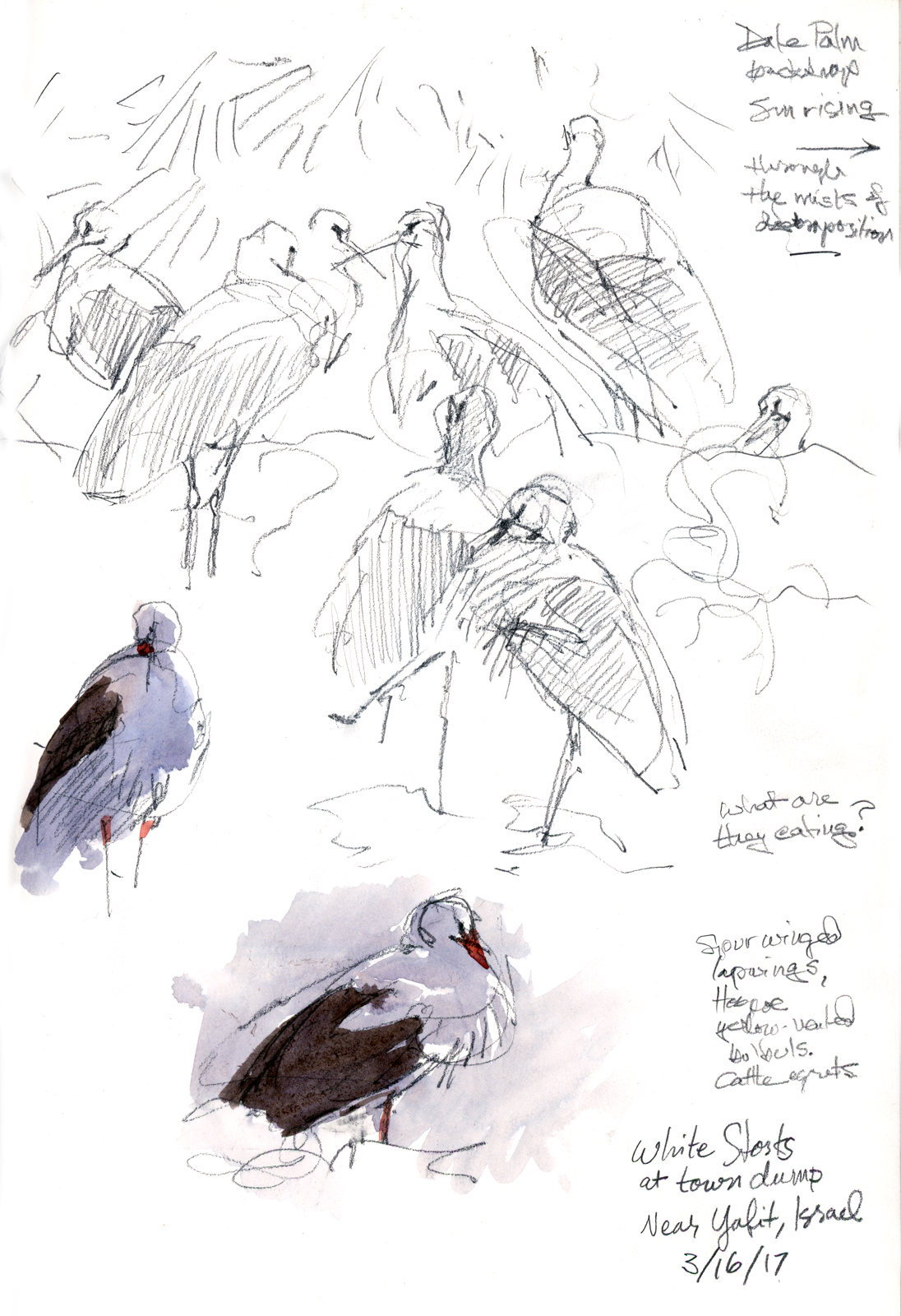 I was privileged to join the ANF group in Jordan and Israel in March of 2017. We painted in a magnificent landscape with fantastic wildlife. The people we met were unfailingly welcoming and generous. All the artists in this select group were extraordinarily gifted, hardworking, and splendid travel companions. We painted, hiked, ate delicious Middle Eastern foods, sketched hoopoes, sand grouse and ibex, soaked (bobbed like corks) in the Dead Sea’s caustic chemical soup, then soaked up the beautiful cultures of Jordan and Israel.